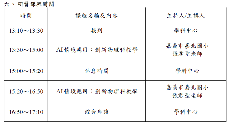 一、 研習時間:114年10月30日(星期四)13:10~17:10
