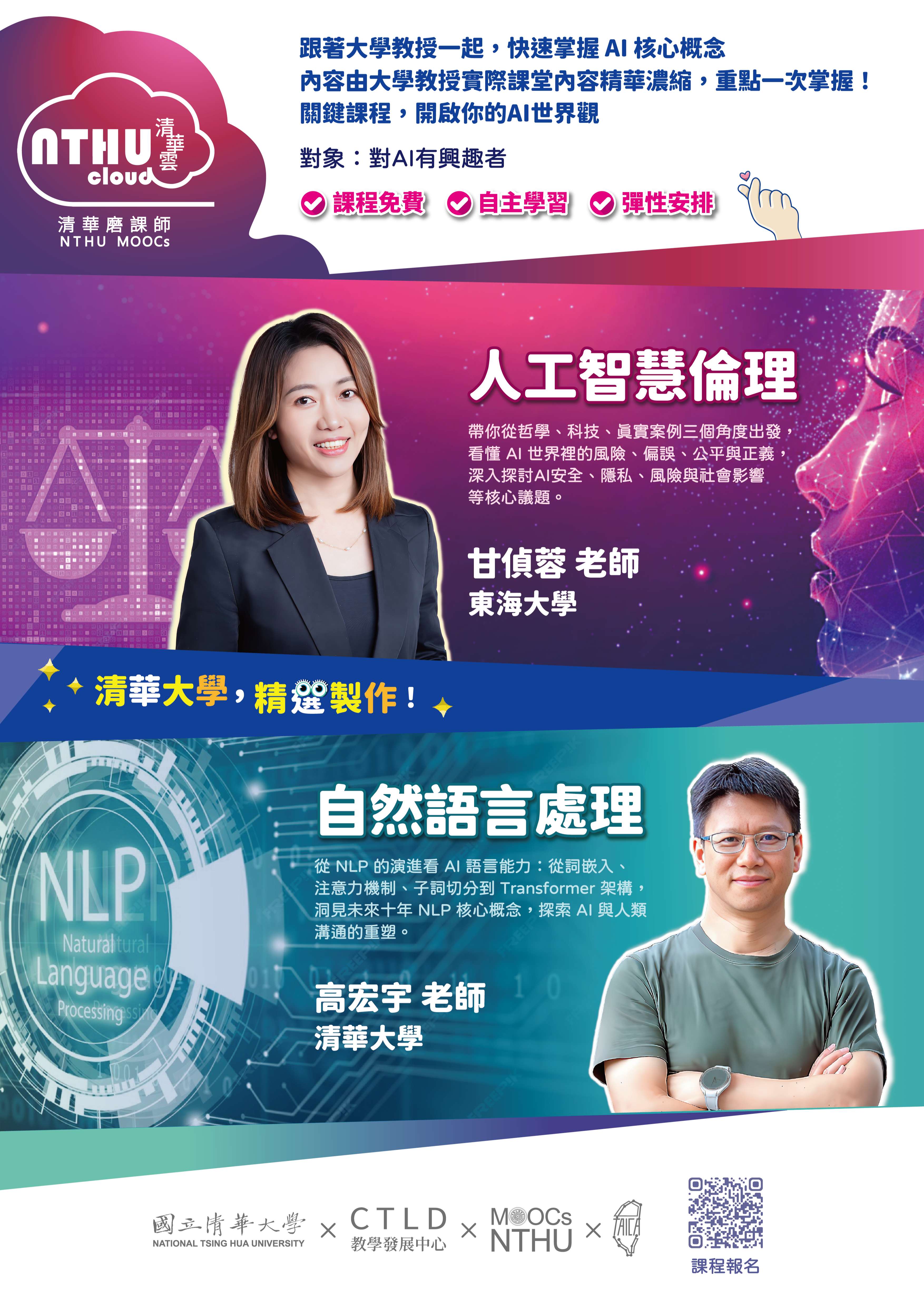 (三)人工智慧倫理 II:安全、隱私與社會影響:https://mooc.nthu.edu.tw/course/info/469。