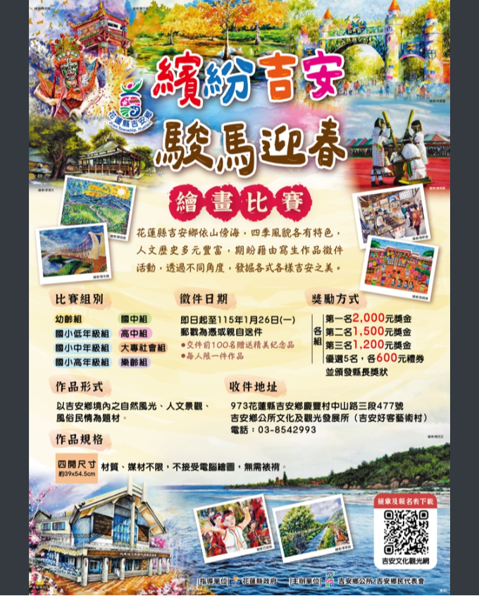 一、為鼓勵各界發現吉安之美,並提升藝文創作風氣,特別辦理「繽紛吉安 駿馬迎春」繪畫比賽,並於