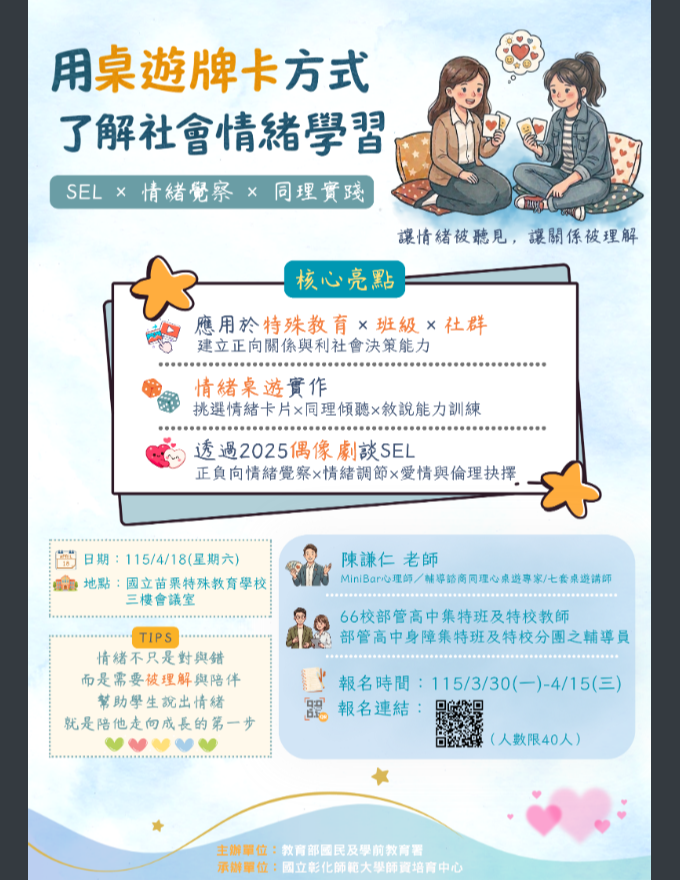 一、本分團擬透過辦理SEL增能工作坊,強化特教教師相關專業知能。